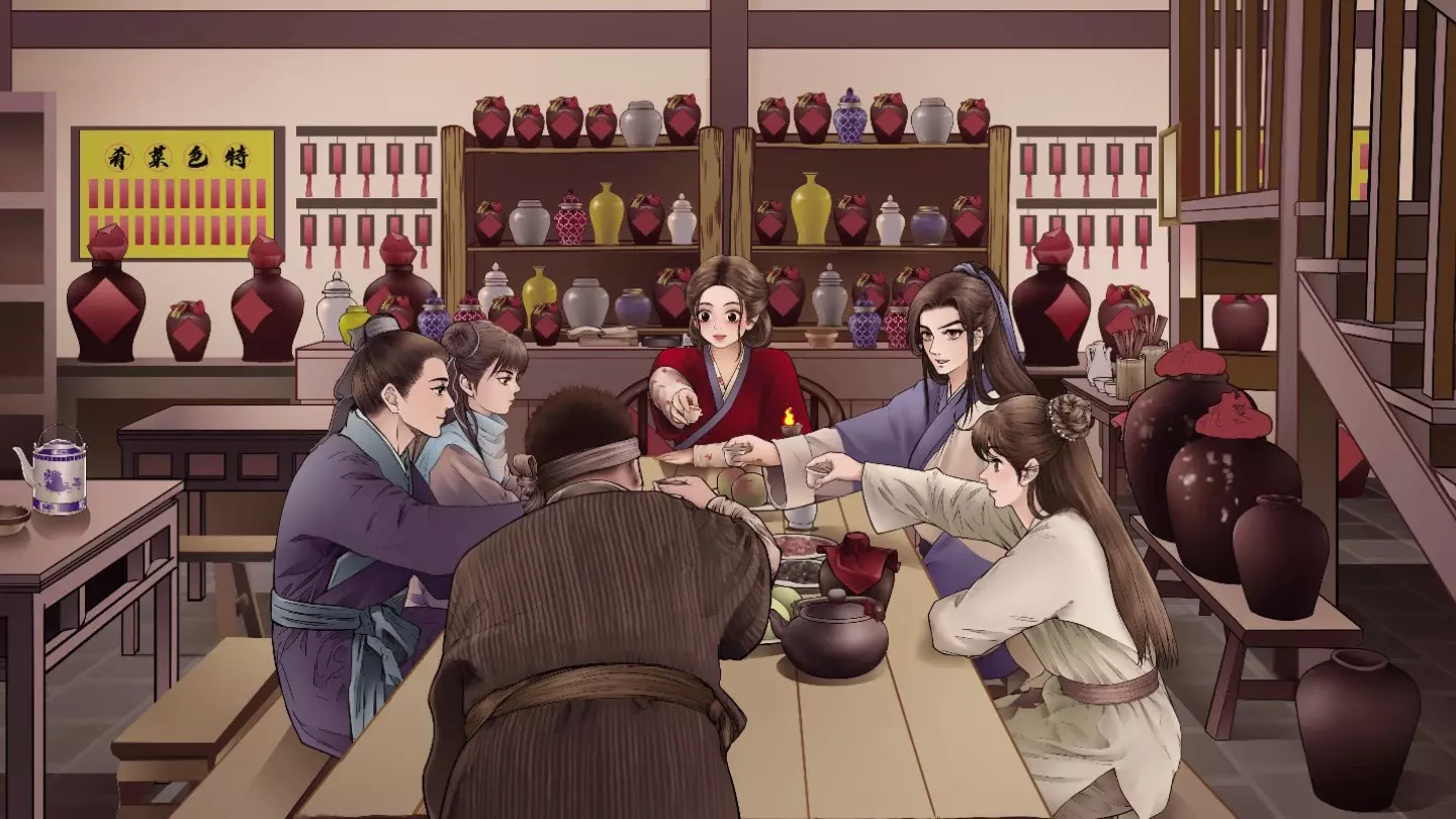 这是一则《武林外传》的原创动画,呈现了雨落七侠镇时,同福客栈里众人开启茶话会的场景,檐外风雨潇潇,堂内却暖意融融,尽显经典影视的治愈感。