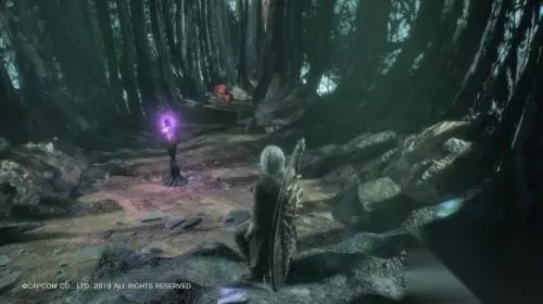 一番打斗后离开建筑,从外面大门废墟左侧可以登上门顶,右侧的泥沼上站一会可以得到隐藏红魔魂石。前方有恶魔树枝路右上方可以进入隐藏房间,内有蓝魔魂石碎片。