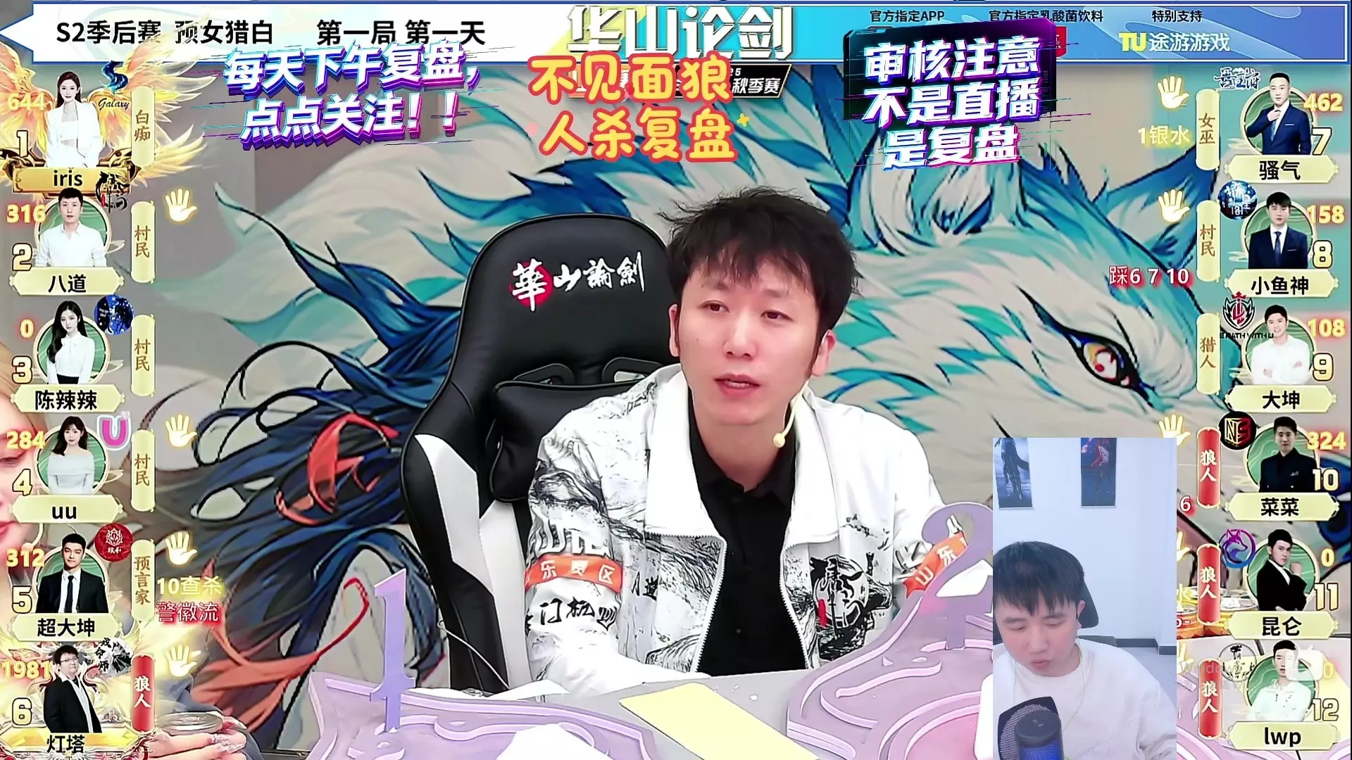 这是WPL2020狼人杀英雄联赛总决赛第一局永序之轮第二天上半段复盘教学内容,因录制被噪音打断分为上下期,内容包含玩家对局发言、出局情况及各自的身份分析、局势判断。