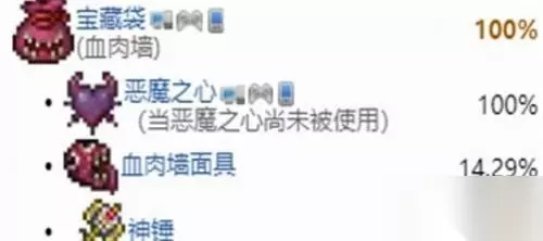 2、肉山人人模式掉落物: 宝藏袋(恶魔之心、血肉墙面具、神锤)