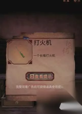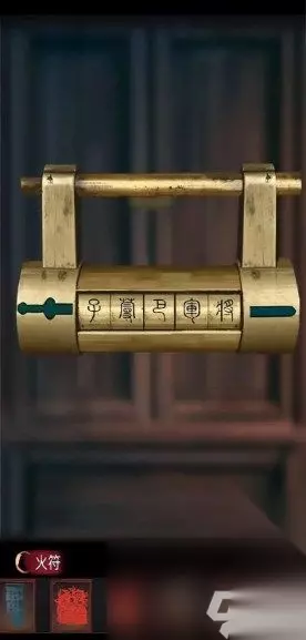 24、在二楼火盆位置拿到把手,鞋架处找到金属棍,在床左侧拾取衣架,床头礼物盒中有钥匙和符纸。 25、使用钥匙打开梳妆台下的柜子,找到火柴并在火盆点燃符纸,透过窗子用衣架互动获得重要线索。 26、屋内右侧柜子进行解谜游戏,解开后可得到照片和胶带。