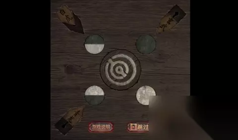 11、移开功德箱下的蒲团,依据图示解开隐藏在下方的地下室密道入口谜题。 12、进入地下室后,结合正殿右边房间的线索调整墙壁上的图案,取得一把石剑。 13、把之前获得的黑勾玉、白勾玉以及石盒子分别放入正殿将军雕像手中和剑鞘中,触发新的情节。 14、回到正殿右侧房间拿取必要道具,并在荷花池中取得火符及打来一桶水。 15、将水倒入地下室火锅内,再把特定物品插入火锅缝隙中,激活阴阳锅装置。 16、在正殿左边房间中找齐白纸和毛笔材料,利用墨汁一笔绘制猪剪纸图案。