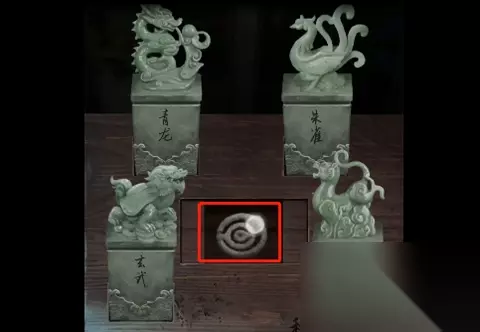 8、敲击大鼓与虎形印章:回到最外层,依照之前获取的鼓点顺序再次敲击两面大鼓,在右边鼓内获得【虎形印章】。 9、放置印章得玉扣:在商场前台放入四个印章,成功后获得玉扣。