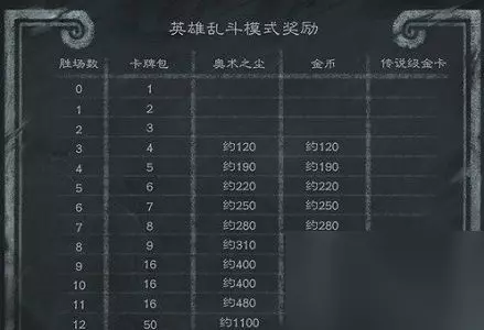 炉石传说乱斗角斗场有什么奖励?乱斗决斗场是炉石传说前两天全新上线的一项模式,听模式的名字我们就能够知道这个玩法不简单,他的规则更是简单粗暴的“只有赢家能够笑到最后,胜场越多奖励越丰厚”短短的一句话,但却是让很多的玩家为这句话热血了起来,毕竟玩家吃不吃素不知道,十二连胜的“最高荣誉”的奖励肯定是吃荤的,想知道是什么奖励吗?跟着小编来看看吧。 炉石传说乱斗角斗场模式奖励内容分享 1、本周乱斗【英雄乱斗角斗场】,12胜将会获得极为丰厚的奖励——12胜卡牌包50、奥术之尘约1100、金币约1100、传说级金卡3,具体奖励如图所示: