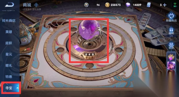 点击夺宝就可以进入对应的夺宝界面了。 以上就是小编为大家带来的王者荣耀夺宝幸运值规则,希望各位小伙伴喜欢啦,更多精彩资讯本站会实时更新。 【小编推荐】专区入口 || 视频站入口 || 体验服申请入口 || 全民竞猜赢好礼 【新英雄爆料】| 司马懿 || 瑶 || 孙策 || 新英雄:囚徒/书圣/瞬 | 【新皮肤爆料】| 李白团战皮肤:敏锐之力new || 诸葛亮团战皮肤:掌控 || 典韦穷奇皮肤 Hot!! | 王者荣耀最新攻略 赛季段位继承表 每日一题 边境突围玩法攻略 体验服爆料