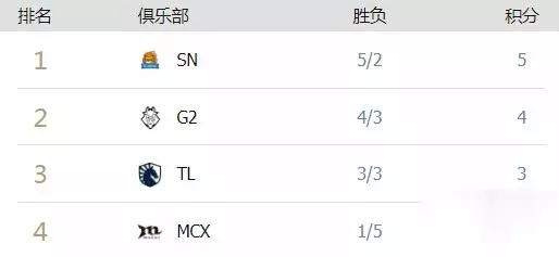 2020英雄联盟全球总决赛小组赛最新积分榜 在英雄联盟这一游戏中,2020全球总决赛每进行一场比赛,都将会对积分进行更新,今日小编将会为大家介绍2020全球总决赛小组赛最新积分榜。 小组赛A组 排名 俱乐部 胜负 积分 1 SN 5/2 5 2 G2 4/3 4 3 TL 3/3 3 4 MCX 1/5 1 小组赛B组 排名 俱乐部 胜负 积分 1 DWG 5/1 5 2 JDG 4/2 4 3 PSG 2/4 2 4 RGE 1/5 1 小组赛C组 排名 俱乐部 胜负 积分 1 GEN 5/1 5 2 FNC 4/2 4 3 LGD 3/3 3 4 TSM 0/6 0 小组赛D组 排名 俱乐部 胜负 积分 1 TES 5/1 5 2 DRX 4/2 4 3 FLY 3/3 3 4 UOL 0/6 1 以上便是小编为大家带来的英雄联盟2020全球总决赛小组赛最新积分榜,希望对各位小伙伴有帮助。