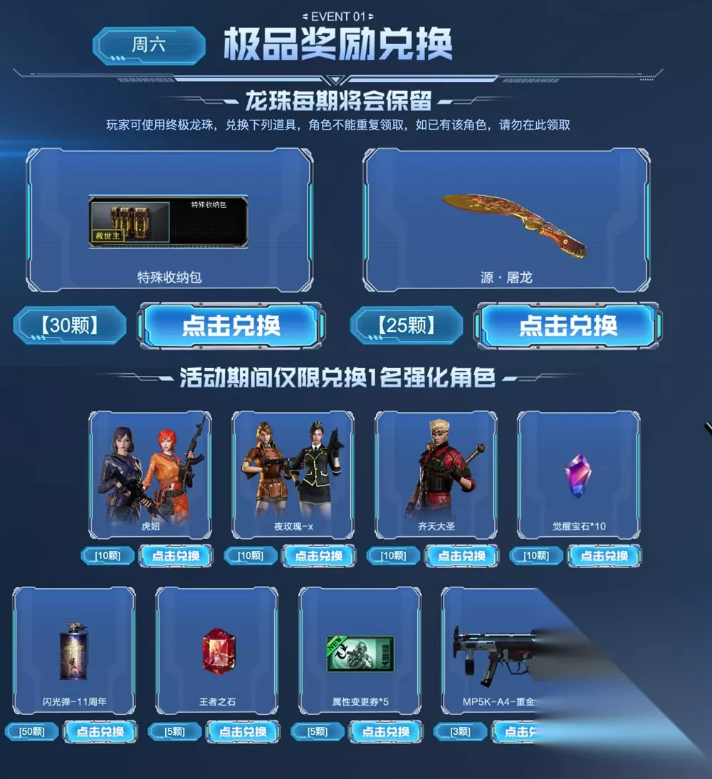 终极龙珠兑换特殊收纳包、源·屠龙、夜玫瑰-X、M5A1-沙漠风暴等