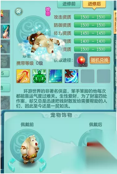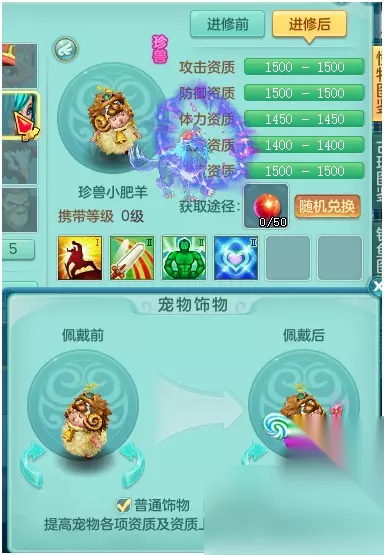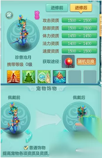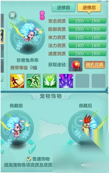 戴了双饰物后的兔乖乖看起来可一点都不乖,更像是万圣节的恐怖鬼。 技能上带了一个剑气,胖熊更建议把这个剑气打掉,换成剑气护符。这样能给高级技能多留一个位置,不然护符就只能一高一低了,剑气的银河护符的话就可以做到全高书。 技能方面,虽然看起来都是不错的技能,而且和物理输出还是蛮匹配的,但是珍兽不缺寿命,高幸运不如高保命或者神佑好,最好还是把所有技能换了的。