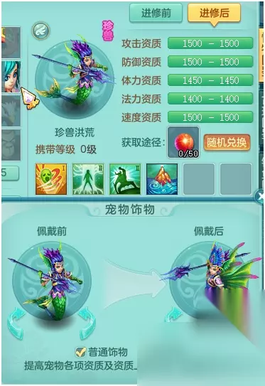 洪荒的自带技能也是法宠类型的,不过好像更杂乱一点:驱鬼、高慧根、高勇敢,波涛奔腾。而且其实珍兽的法力资质是真的不如一般的宠物,还是打造成攻宠好一点。打书的时候如果顶不掉高级勇敢的话可以留着,算是一本很不错的书了。 而且,洪荒的施法姿势还是有点帅的,特别是打出剑气的那一下,十分霸气。