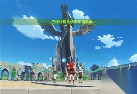 最后第三处的目标是大教堂前的风神像。这个没什么好说的,去直接拍就行了(不用非像我一样拉这么远拍照也可以成功) 和之前的留影任务一样,只要你拍摄的角度正确,屏幕就会有文字提示,此时点击拍照就能完成任务目标了。 三处目标全部拍摄完毕后,回到骑士团图书馆找NPC萨义德对话,交出拍的照片就可以完成此任务的所有流程啦~