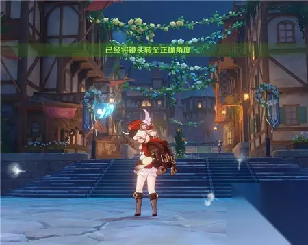 这个任务和之前的留影任务一样,都要用菜单里的摄影功能来拍照,不能用小道具留影机拍。 这次我们需要拍摄的目标有三处,第一处目标是喷泉广场上空的花饰。