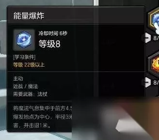 【能量爆炸】:是法师少有的近战技能,这个技能算是法师在PVP中生存技能了,因为它带有击退的效果,并且在近战状态下,法师可以利用这个技能给自己一个调整的间隙,而【能量爆炸】技能的伤害也算不俗,所以建议点满。