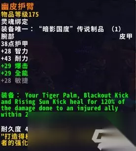 3.禅院古训 可选部位:手套,护腕 效果:你的猛虎掌,幻灭踢。旭日东升踢会为20码内一个受伤盟友回复120%其造成伤害的治疗量。