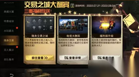 【研发福利活动调整】 1、研发福利活动将于2022年8月2日3时结束并关闭,我们将为尚未领取满本期全部奖励的幸存者补发剩余的普通版奖励,并为激活进阶版的幸存者补发剩余的进阶版奖励; 2、活动结束后,我们将为达到本期积分上限的幸存者额外发放一期研发福利普通版的全部奖励。 【其他内容与新规】 1、随身交易之城功能开启,幸存者可以在个人信息界面,或是主界面活动的二级展开入口内进入随身交易之城(额外收取5%价格作为运费); 2、交易之城福利箱升级,领取福利箱时有小概率可以额外获得贸易联盟的惊喜大礼,同时通过电视购物将获得回馈,所需运费降低(营地相关科技同步调整);