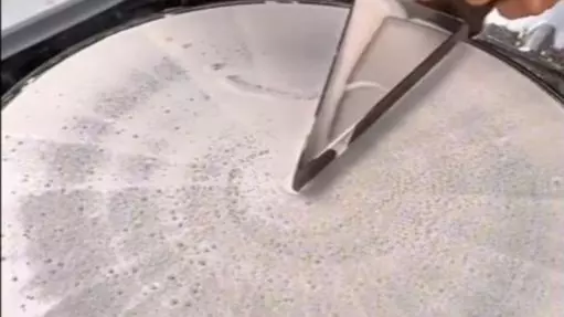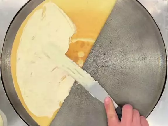 这是AI生成的趣味内容,展示Q版邪恶迪迦进行煎饼制作的日常,画面呈现了摊煎饼面糊、摊开蛋液等煎饼制作的步骤,还原煎饼摊的制作场景。