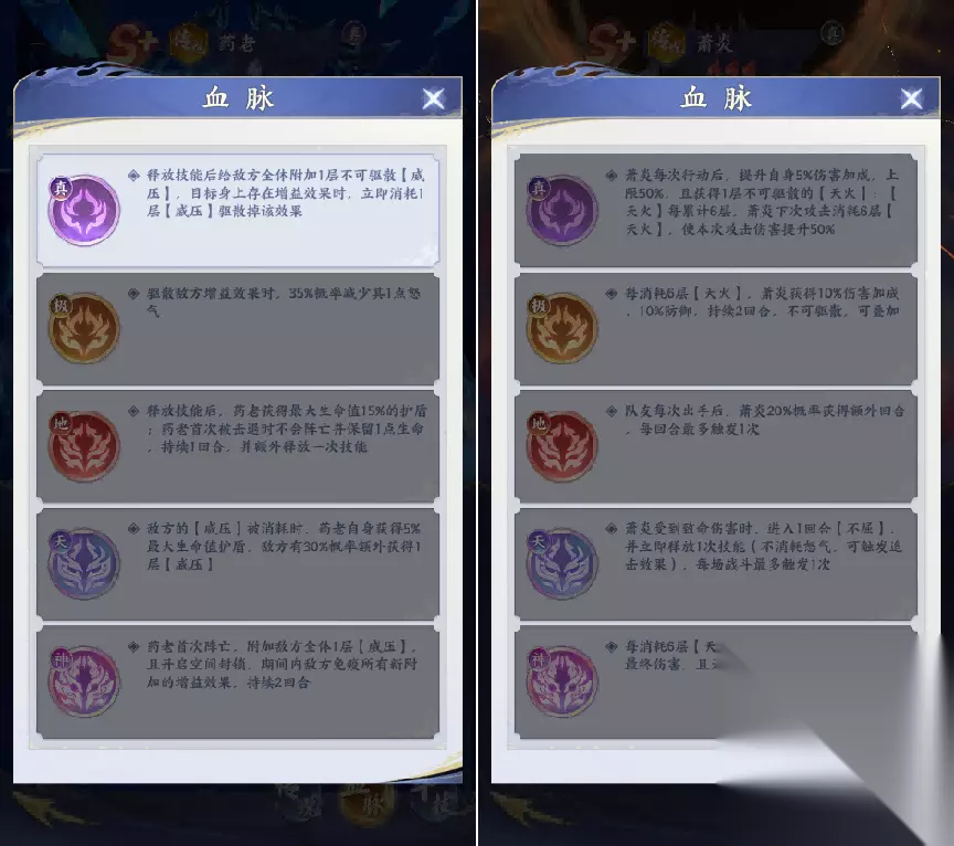 最后是传说卡牌的阵容搭配: 一号位:摘星老鬼,二号位:箫熏儿,三号位:小医仙,四号位:传说-药老,五号位:传说-萧炎,六号位:萧炎 阵容思路:一号位摘星老鬼给前排提供生命上限的护盾,二三号位箫熏儿和小医仙负责给队伍加攻击和暴击,四号位传说药老通过叠怒气打出高概率封锁限时对方行动,五号位和六号位萧炎通过两位辅助叠的攻击暴击和怒气打出高额伤害。 减益效果:摘星老鬼护盾被打破会眩晕敌人,传说药老使对方无法行。 增益效果:摘星老鬼为前排赋予护盾,箫熏儿为攻击最高的赋予两点怒气和攻击力,小医仙为己方全体增加暴击率和两点怒气。 好啦传说卡的介绍到此为止!紧跟我们的步伐,教你玩转《斗破苍穹》