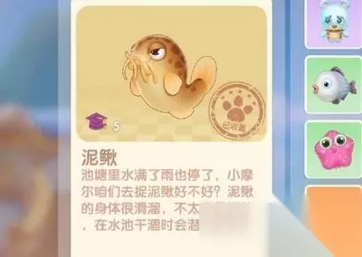 关键字:摩尔庄园泥鳅怎么钓 泥鳅垂钓方法 摩尔庄园是一款很好玩的游戏,还是很多玩家都在玩的游戏,游戏中可以钓鱼,其中泥鳅是4种新鱼类之一,因为身体滑溜,喜欢潜藏在干涸水池的淤泥中,所以钓取难度非常高。很多玩家想知道泥鳅怎么钓?下面就是摩尔庄园泥鳅获取方法了,有兴趣的小摩尔们都来看看吧! 摩尔庄园手游泥鳅怎么钓 家园池塘(全天)。 泥鳅可以用来研究菜谱,制作新的菜谱然后在餐厅出售,或者也可以卖给花婶。此外还可以单独卖个尼克,在卖个尼克的时候,可以选择在最高售价日出售,这样比较划算。另外泥鳅还可以作为赠礼,或者在大力那里兑换物品。