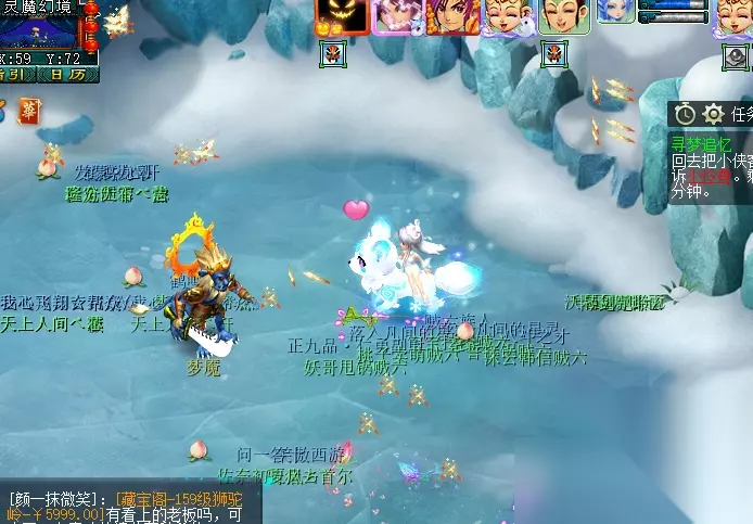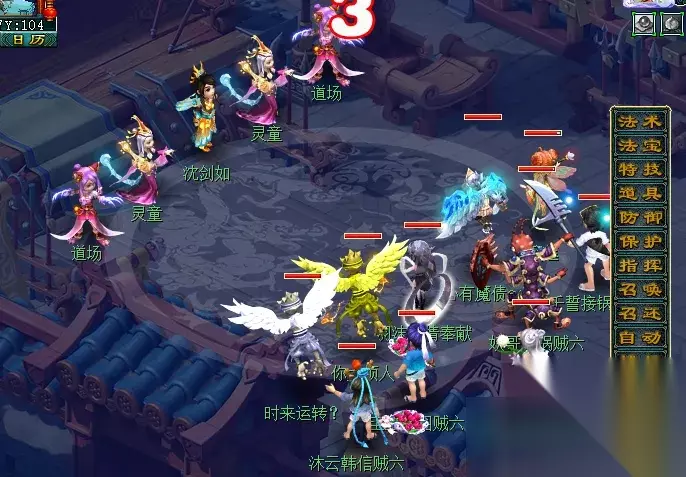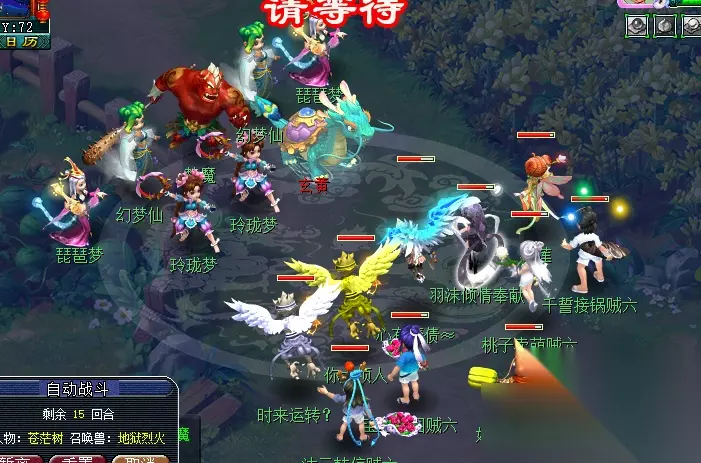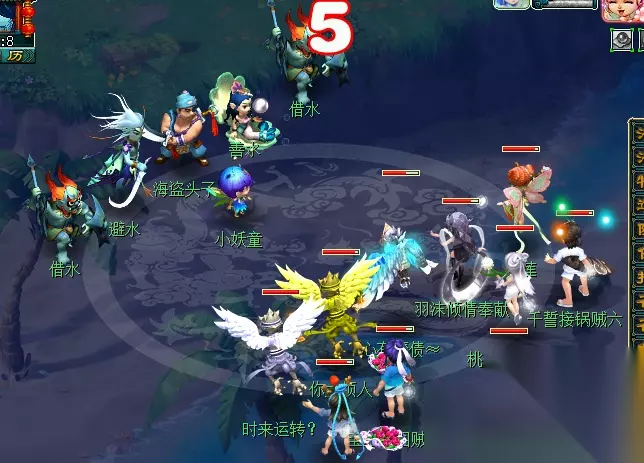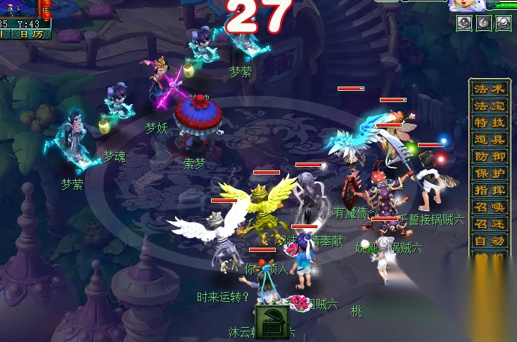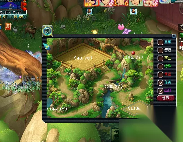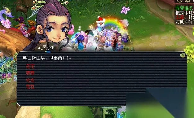 特殊事件:对主怪使用幻梦晶并战斗胜利后,传送至幻灵仙境中。幻境内共有五位幻灵小仙(大致坐标下图已为大家标出),队长需回答正确五位幻灵的问题(可查询梦幻精灵或自行百度),完成后自动传送出场景。此期间,玩家也可使用飞行符、导标旗自行离开场景。