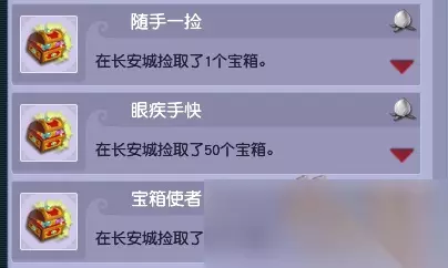 3.天降宝箱(成就共3点) 活动结束10分钟后(21:40—21:44),会在长安城各地刷出宝箱,完成任务≥3次的玩家可拾取。 奖励:有几率获得经验、金钱、物品奖励,包括超级金柳露、天眼通符。