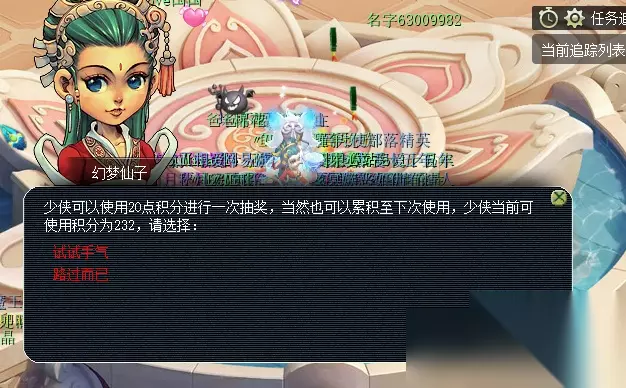 4.积分抽奖(成就共3点) 活动结束后可在幻梦仙子处使用寻梦追忆积分兑换奖励,20积分一次。寻梦积分可累计到下次活动使用,不消失。能否获得大五宝就看各位少侠的手气啦!