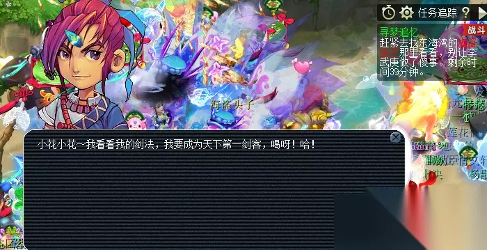 5.少侠剑梦 具体流程:前往建邺城(40,70)李武庚→给予桃花→前往小花处→到东海湾海盗头子那里阻止李武庚做傻事,需战斗