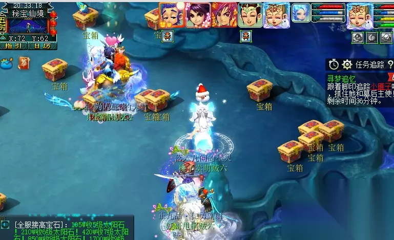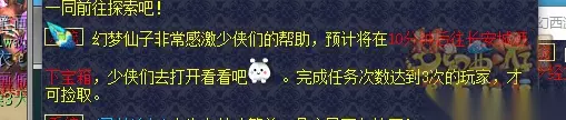特殊事件:对主怪使用幻梦晶,战斗结束后被传送至秘宝仙境中。场景内刷出多个宝箱,需≥3人组队拾取。宝箱拾取5个后或在此停留时间达到5分钟,队伍传送回长安。