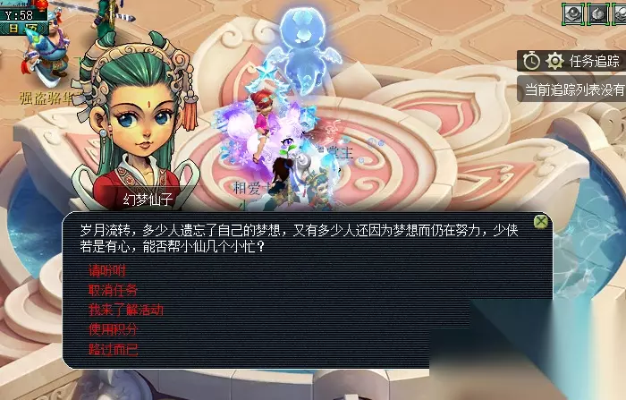 活动介绍 一、环式(成就共8点) 玩家组队前往幻梦仙子处领取任务,玩家可根据提示完成任务。环任务一共分为六种类型,难度等级为简单,每完成一轮环任务后,全员获得寻梦积分,队长会获得幻梦晶。 奖励:经验、金钱,有几率获得物品奖励。