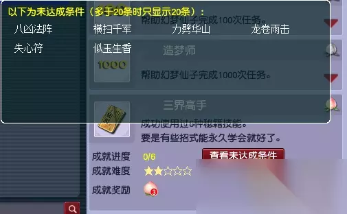 5.其他相关成就(共8点) 1.巧计秘籍(3点) 获得途径:完成一轮寻梦追忆任务有几率获得 使用说明:秘籍上记载的技能仅对寻梦追忆活动怪物有效,技能等级=人物等级+6,使用不区分门派,可重复使用。 允许给予、交易给他人使用。