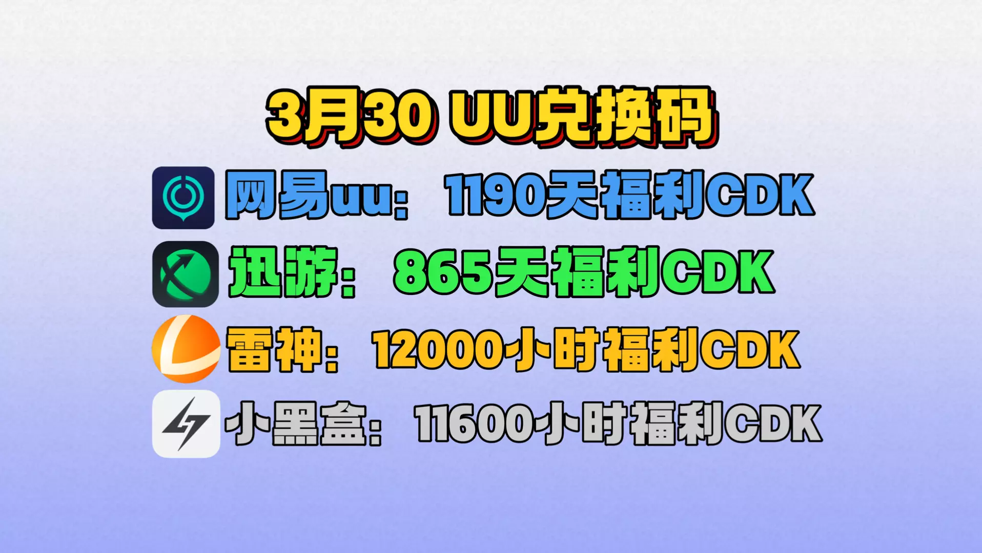 【8月30日更新】免费白嫖游戏加速器主播口令兑换码 /还有各大加速器CDK随机送送送! 1.雷神加速器 50小时 ZQ123 2.NN加速器 72小时 ZQ12…