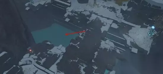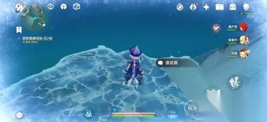 第二个漂流瓶位于一块礁石之上,由于角色在严寒天气中游泳会加快冷气的侵袭,所以这里推荐旅行者们携带凯亚、七七一类“渡海”角色前往拾取。 位置3