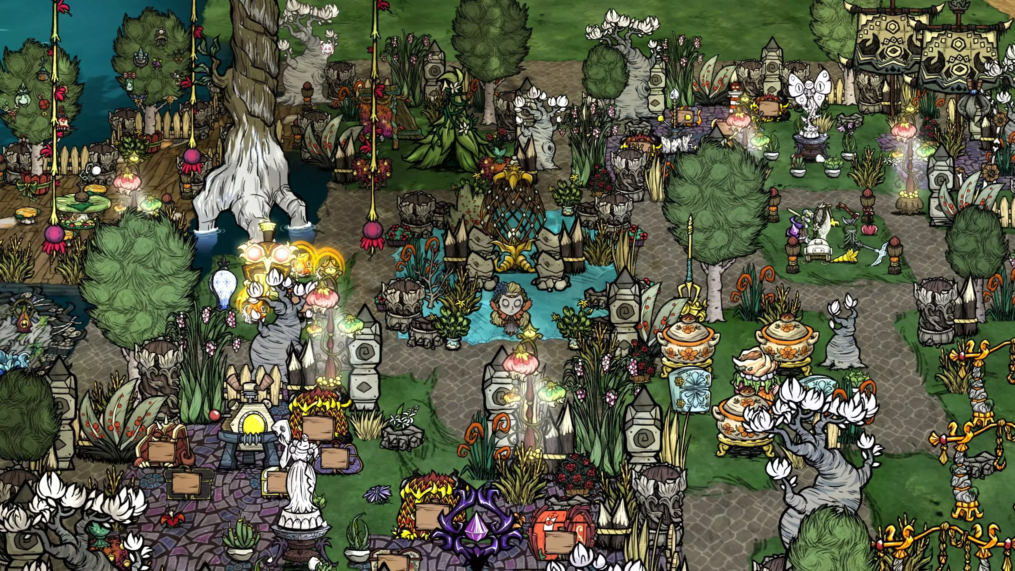 这是沙盒游戏《饥荒》的建家内容,展示了为阿比盖尔打造的小花圃,还分享了防腐喷雾在这个花圃建造中的利用方法,呈现了从规划到种植的建家过程。
