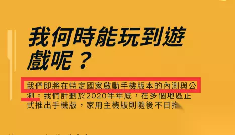 官方:年底,我们将在中国启动手机版本的内测及公测 (也就是最迟11月份内测12月份公测) 现在台网消息进行了更新!
