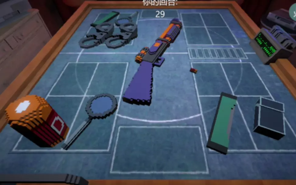 这是一款创意改编的恶魔轮盘赌游戏,将原本的手枪换成了机枪,游戏场景为带有操作台面的室内空间,玩家可操控机枪进行游戏,趣味十足,若在游戏中“眼睛瞎了”还能找作者治疗。