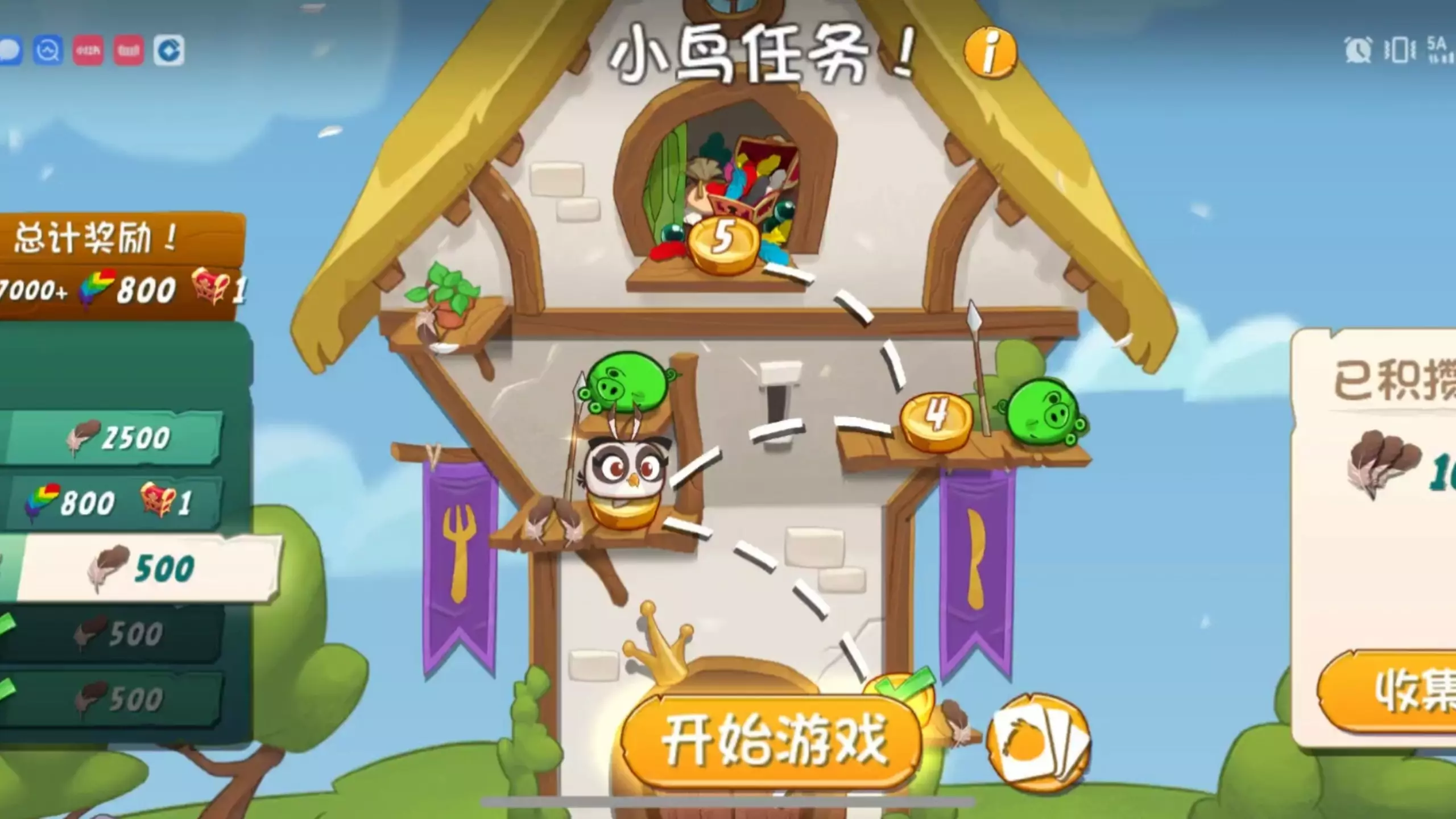 愤怒的小鸟2大合集,里面有公会战、PK赛、每日赛、训练营、普通关卡等内容。