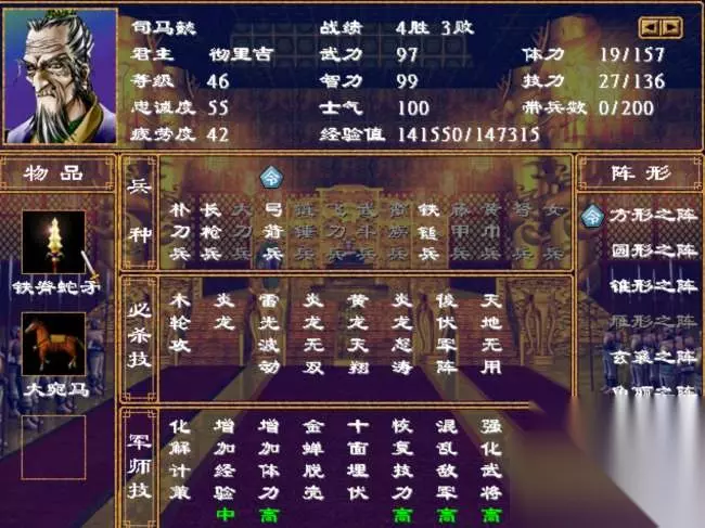 但他是智将啊!最强军师技能居然是姜维、诸葛亮之流才有的“增加技力高”。就这三个技能,他足以成为《三国*英传2》中的天花板级别的人物了,无论是当武将还是军师都非常完美。 司马懿 和田丰基本上是平起平坐的顶级智将。 在《三国演义》中虽然处处被诸葛亮算计,但最后还是他活到了大结局,甚至他的后代直接夺取了曹氏家族的帝王之位。