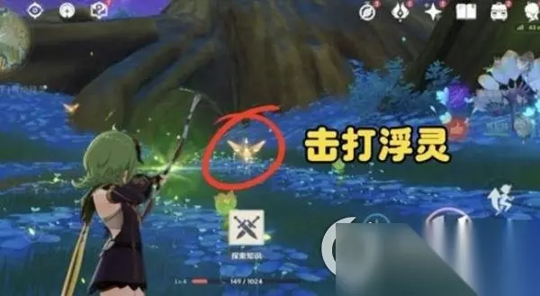 第二步:夜晚捕捉浮灵 将时间调到晚上,会出现很多浮灵。此时,玩家需要切换为弓箭手,长按蓄力并击打浮灵,让它固定在原地。然后,再次变身为斯露莎,去捡起浮灵。接着,继续触碰净觉花,就会出现一个珍贵宝箱,价值10原石。这个操作在三个地方都是一样的。