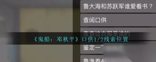《鬼船:邓秋平》是《孙美琪疑案》第五季第二集,游戏中五级线索——口供1/2在哪里呢?下面是233乐园手游网小编给大家带来的《鬼船:邓秋平》口供1/2线索位置介绍,还没有找到线索的小伙伴一起看看吧! >>>>小编推荐:《鬼船:邓秋平》攻略线索大全 >>>>小编推荐:《孙美琪疑案》系列顺序攻略合集