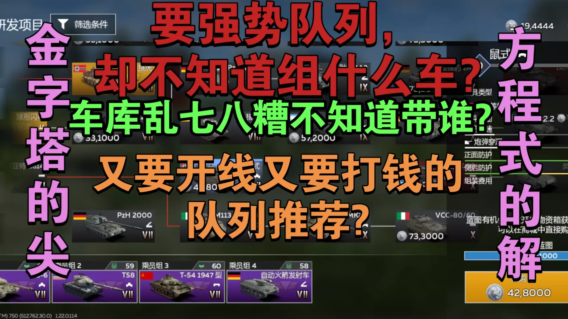 忘了七级还有plz83130这个强车了,她也可以替换自动火箭发射车作为四号位出战 视频里所有组进队列的线车都推荐镀金 再次叠甲: 游戏版本、玩家操作习惯均会影响…