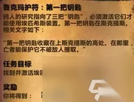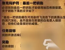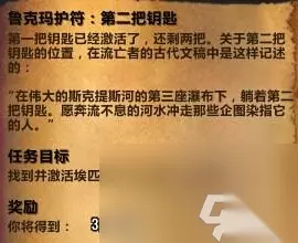 后边的任务就简单,任务则是根据提示寻找三把钥匙,钥匙的未知按照地图提示寻找则很容易看见。 鲁克玛护符:第二把钥匙