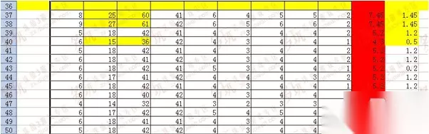 二图计算每级的成长,就是2级数据减去1级数据的数值,以此类推 很明显,该法宝2-3 以及4级,有过3个爆发点(见黄色填充部分) 2级气血成长60 3级成长61/气血正常成长41.5=1.45*天琊成长系数5.2(220档次天琊的成长系数,220以下天琊则少)=7.54 同样的计算4级出现了一个最低气血成长36 而查看最高抗性晕抗(2图第五列数据)成长,到第8级才出现一个5,很容易计算自然成长在4.15 4+(1/7=0.15)=4.15 (60级测抗天琊 玉后在218-225之间 自然成长5.2的系数——该数据已经减去10级以后两个爆发点的系数) 因法宝的成长系数存在误差,可以预测该法宝 10测抗容量在8-11点之间,也就是10级测抗 57 -60的天琊) 结论:法宝的好坏,看大功和气血的成长远比抗性要准确 除非气血大功测算出的爆发点数很高,而抗性成长很低的法宝,10级测抗应该一试之外,10级成长低于40的法宝,没大的可能是上品法宝 10级成长低于40的法宝是道槛,原因就在于,法宝5个爆发点3个集中于10级以前 有些法宝看不出爆发点是因为大家看得抗性,抗性显示只有4或者5的整数,所以看不出来。