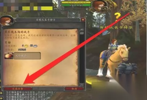 2、与骑马人对话,接受任务黑水伐木场的战斗。