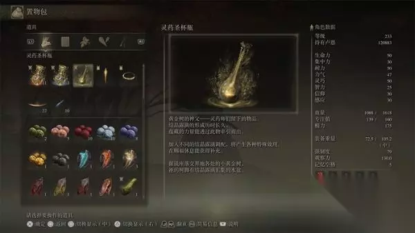 1、灵药圣杯瓶+红结晶露滴 效果 灵药圣杯瓶:激活灵药调配功能 红结晶露滴:能恢复血量上限一半的血量 获得方法 「宁姆格福」东侧与「盖利德」交界处,「玛莉卡第三教堂」内的盆中拾取。