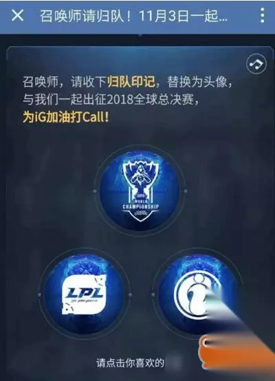 S8决赛最终战役即将打响,通过一个H5点亮你的归队档案,测一下你与哪位职业选手最像,换上2018全球总决赛LPL专属头像,转发传递召唤师归队,和iG电子竞技俱乐部一起出征,为他们加油打call,告诉全世界我们是LPL!