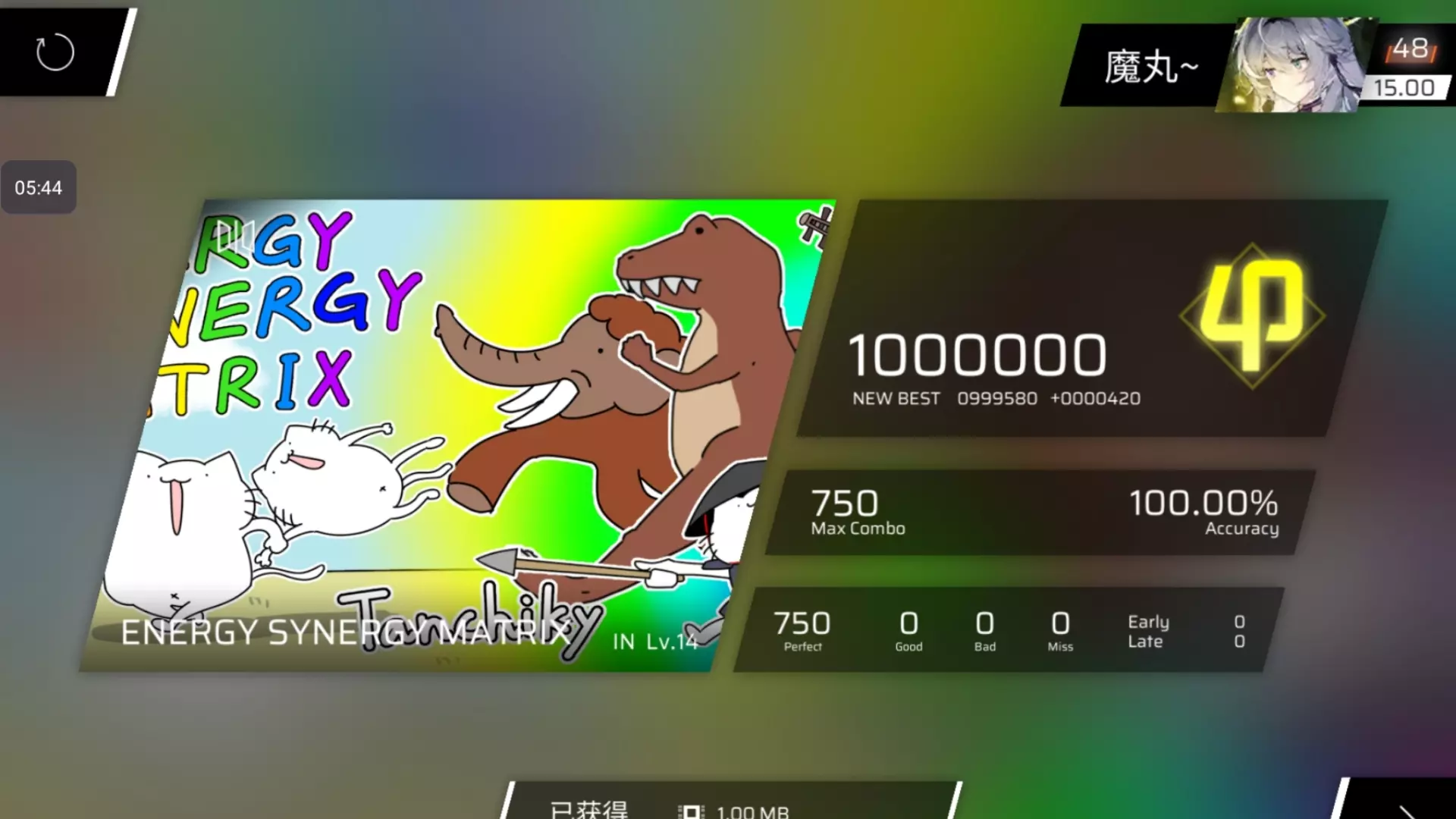 游戏名称:Phigros 曲名:Re:birth 难度:IN 15.4 BPM:196 谱面总评:15下位,除尾…