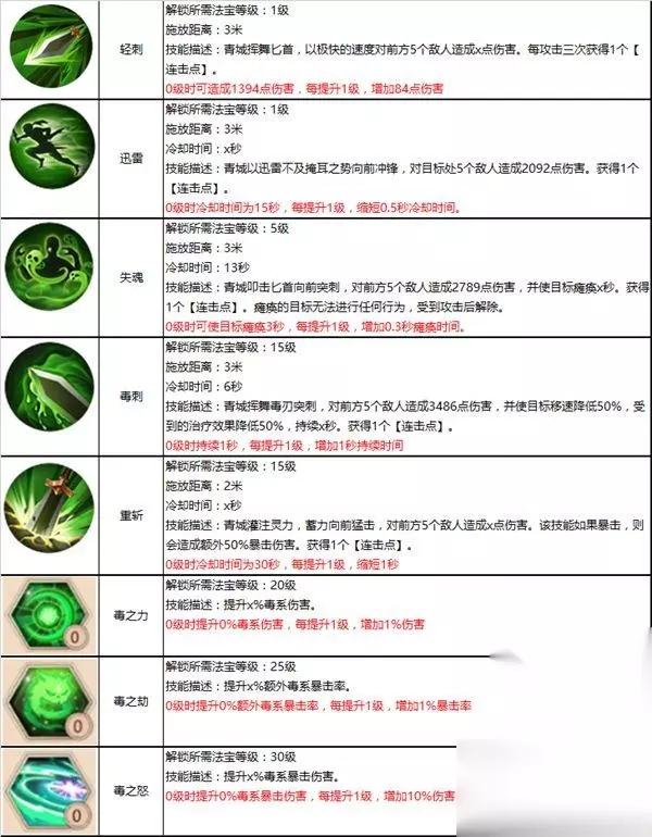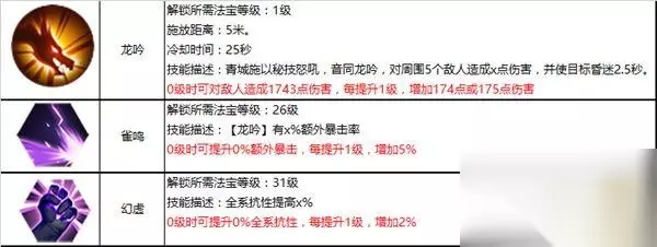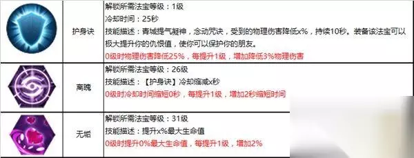 套装属性:778敏捷、125闪避、182暴击、888体质。 接下来说说主、副法宝,如果你是喜欢PK的青城,建议用你匕首、龙雀环、太乙靴,匕首和龙雀环可以增加伤害,而太乙靴可以增加青城的存活几率。 如果你是主刷本的青城,可以用镰刀、离垢钟、镇仙旗,这个组合下本很适合,可以抗怪、躲闪率较高,还能使怪物对你造成伤害降到最低。 技能加点: 主法宝: 镰刀: