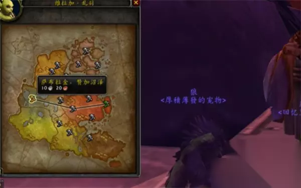 3、从命运阶梯下楼,右转即可发现NPC维加拉·乱羽 她是你通往赞加沼泽的关键人物。 若已解锁飞行点,可通过她直接飞往赞加沼泽。 若未解锁,可沿着地狱火半岛北部陆路步行前往。