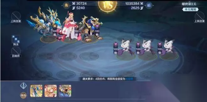 奥奇传说耀世挑战第三关打法攻略 通关要求: 4回合内,将敌阵全部变为光怪怪。 通关阵容推荐 这一关对练度的要求还是比较高的,4万左右应该能打过。 通关阵容参考图