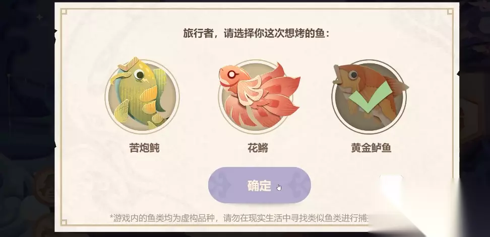06:精致花锵料理:适中调料,烤熟花鳉即可 解锁奖励:摩拉3000 增加的式大将的好感度:50