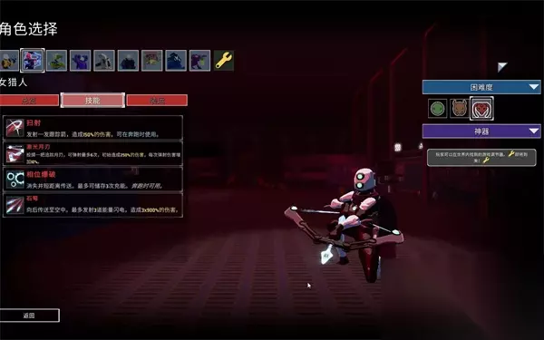 雨中冒险2女猎人技能搭配攻略: 1、对主要技能1扫射和主要技能2疾风进行对比: 这里推荐携带【扫射】,虽然疾风相对而言伤害更高,但是需要暴击才能触发额外效果, 而扫射虽仅有150%的伤害,但是有一个关键点是扫射它可以在奔跑时使用,相对更为适配灵活的女猎手, 单人游戏时更推荐扫射,若是多人游戏时,可能会吃到其它道具暴击的加成,你也可以携带疾风。 2、对辅助技能1闪现和辅助技能2相位爆破进行对比: 这里推荐【相位爆破】,虽然闪现传送距离更长些,但是闪现的cd7秒也更久, 女猎人的技能的输出距离比较近,一个短冷却、可充能的位移技能更为契合。 3、对特殊技能1箭雨和特殊技能2石弩进行比较: 这里推荐【石弩】,箭雨相对而言对地能力强些,但是触发系数过于低下,对于灵活目标命中率也堪忧,【石弩】的收益相对稳定,且倍率更高,触发系数更为优秀。 4、综合比较主要技能,辅助节能以及特殊技能,再结合女猎人本身的角色属性, 这里推荐【扫射】、【相位爆破】加【石弩】的组合,这套相对更适合女猎人, 充分发挥出她灵活高机动性的特征,同时也增加了生存能力及对空能力!