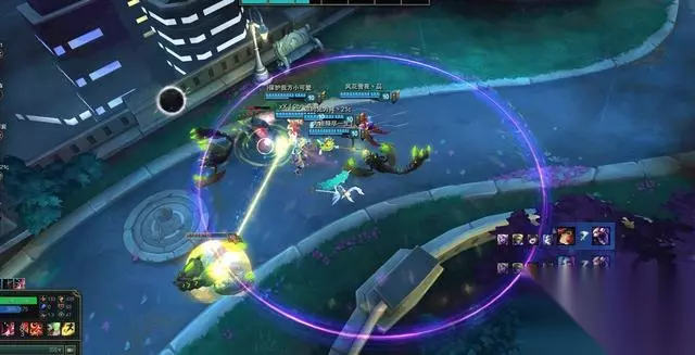 而进入第三关如果没有玩过的小伙伴要注意,千万不要出圆圈以外,不然会掉血很快,跟着圆圈走到终点就行了。这关出现的怪物是蝎子,一直会用R技能把你拉出圈外,注意丢控制技能跟集火就行了。